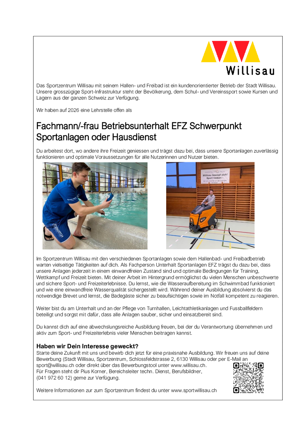 Bieten Sie Schnupperlehren an? Haben Sie eine Lehrstelle oder möchten Sie auf ihre Infoveranstaltung aufmerksam machen?